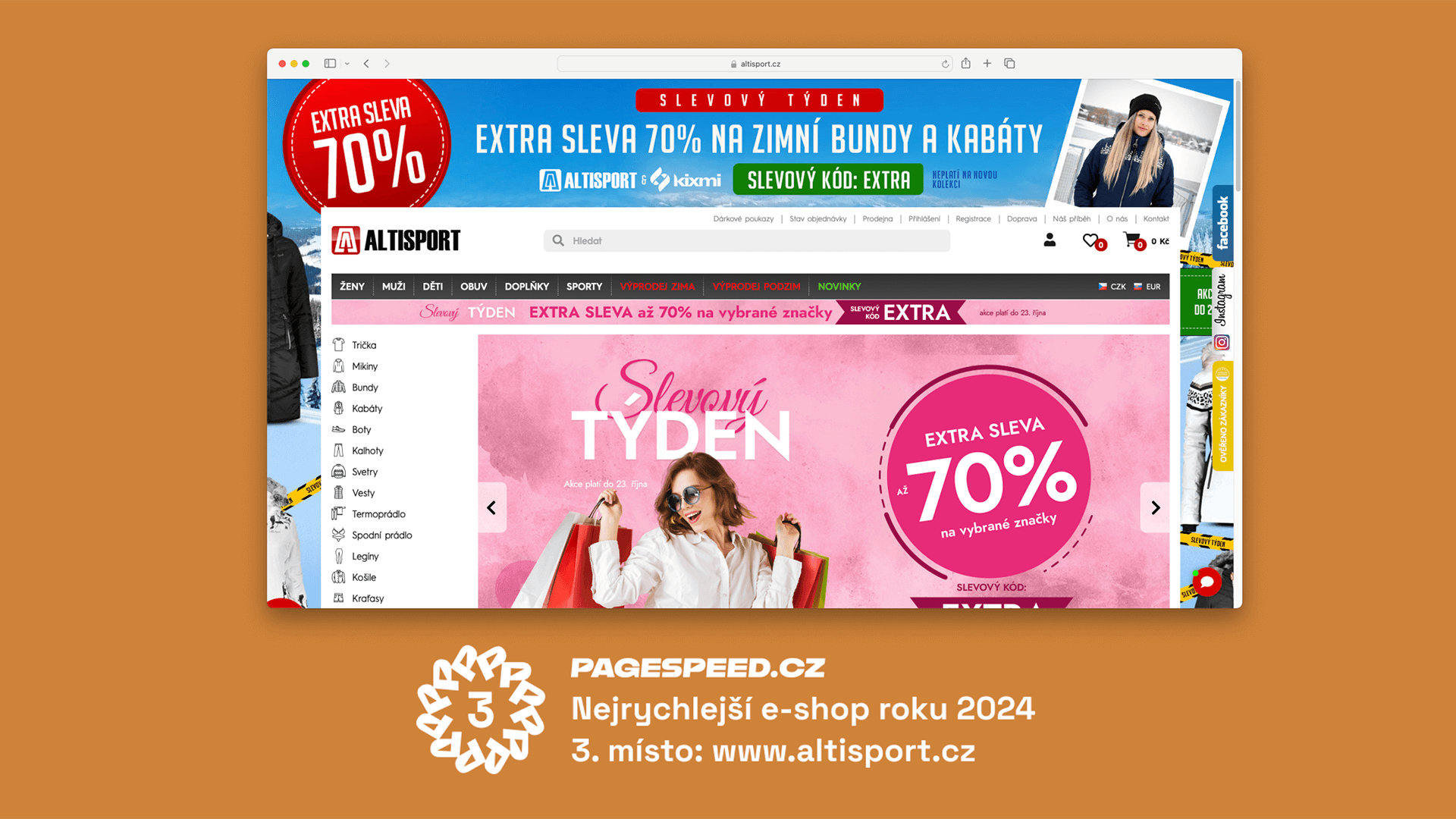 Na třetím místě se umístil e-shop Altisport.cz, která naše konzultantské oči potěšil mimo jiné rychlosti načtení na desktopu pod jednu vteřinu. Potlesk tedy patří i týmu stojícímu za tímto e-shopem.