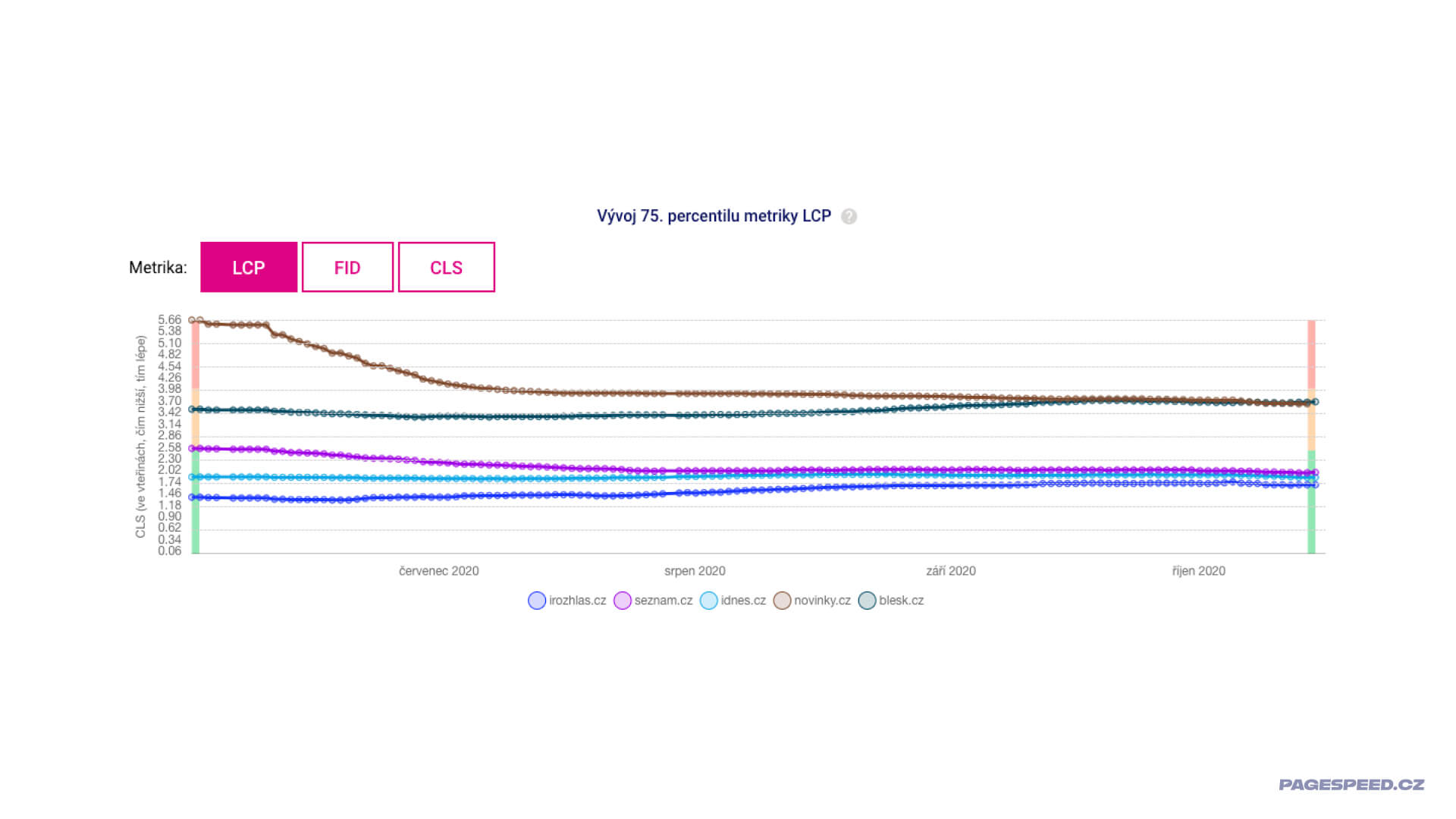 Také výsledky z Chrome UX reportu se dočkaly aktualizace. Nově je možné sledovat metriky v čase. K tomu slouží nové grafy.
