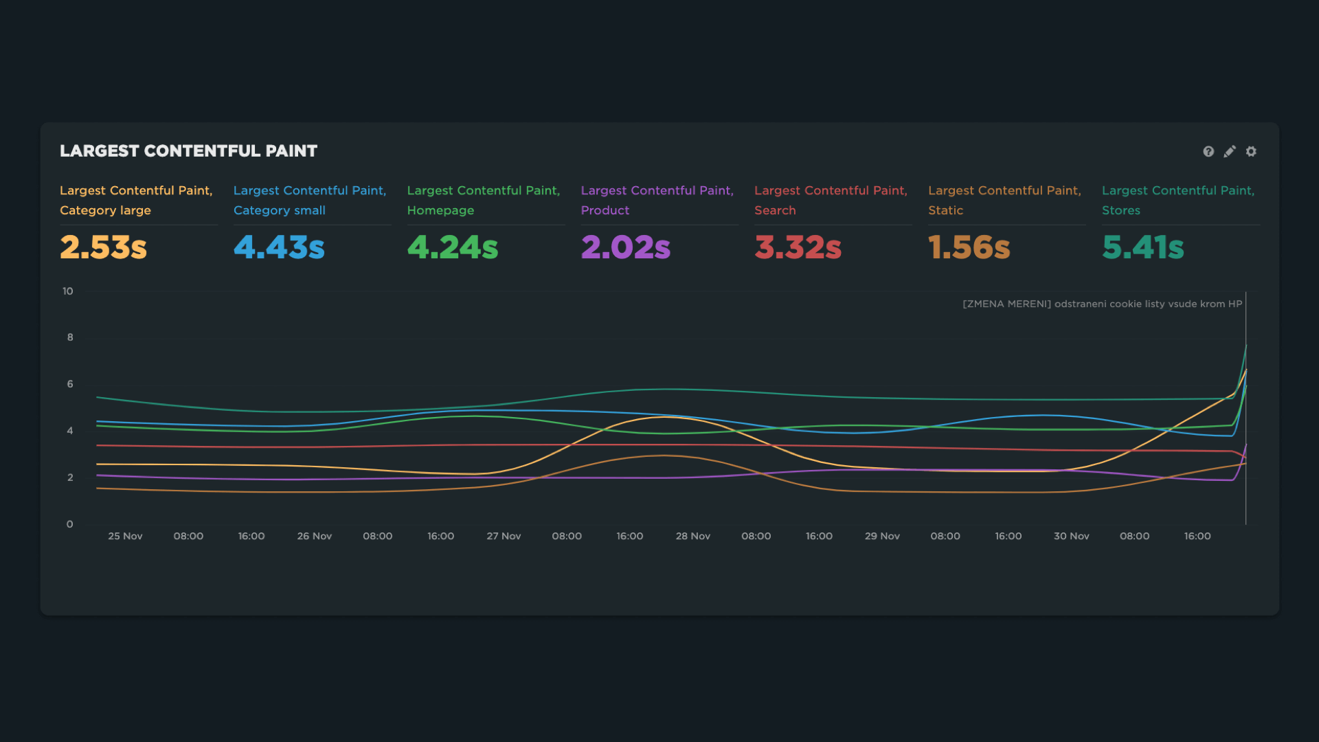 Live dashboard pro rychlostní metriky na webu jednoho z našich klientů.