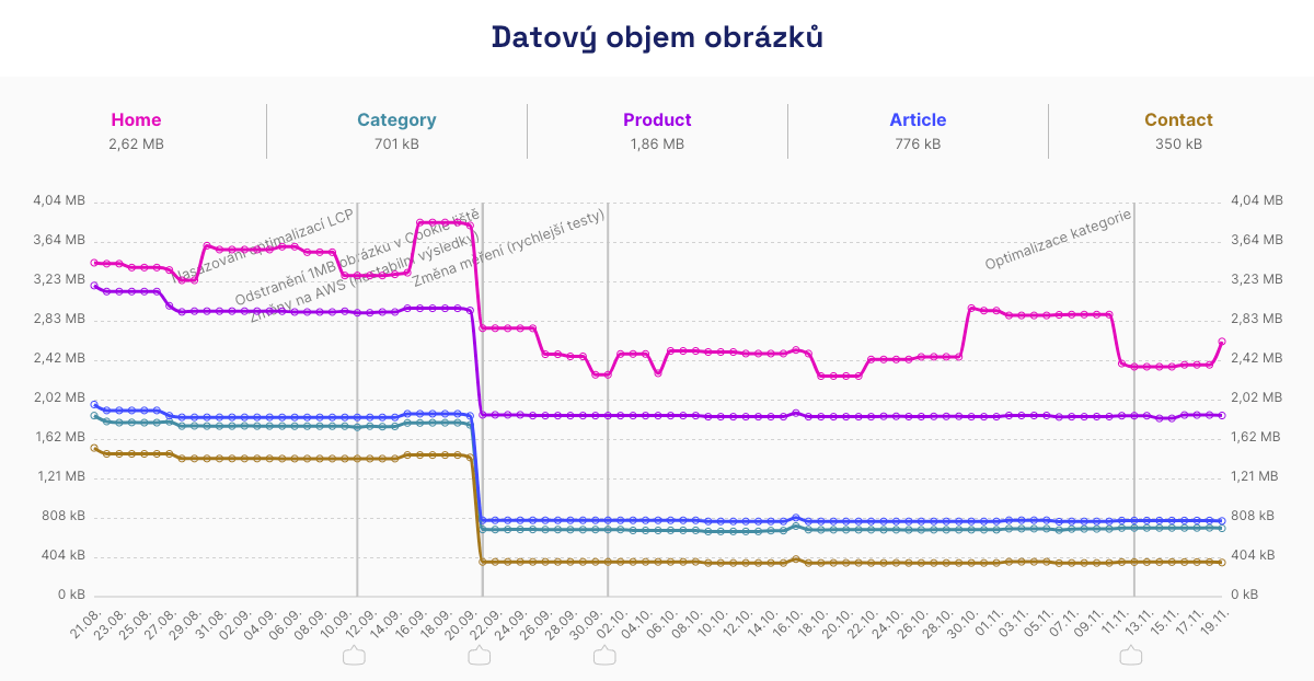 Tip na závěr: Vždy monitorujte datový objem obrázků. Naše zkušenost říká, že i změna jediného obrázku, třeba na homepage webu, může způsobit nepěkné výkyvy v rychlosti webu: