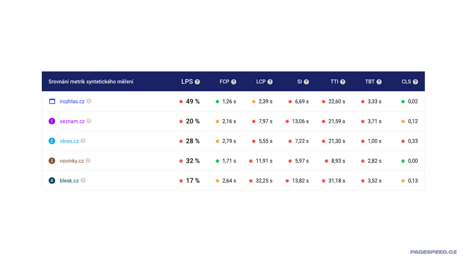 Výsledky syntetických testů jsou nyní podrobnější. Kromě Lighthouse performance score (LPS) se můžete nově podívat i na hodnoty jednotlivých metrik, se kterých se LPS počítá.